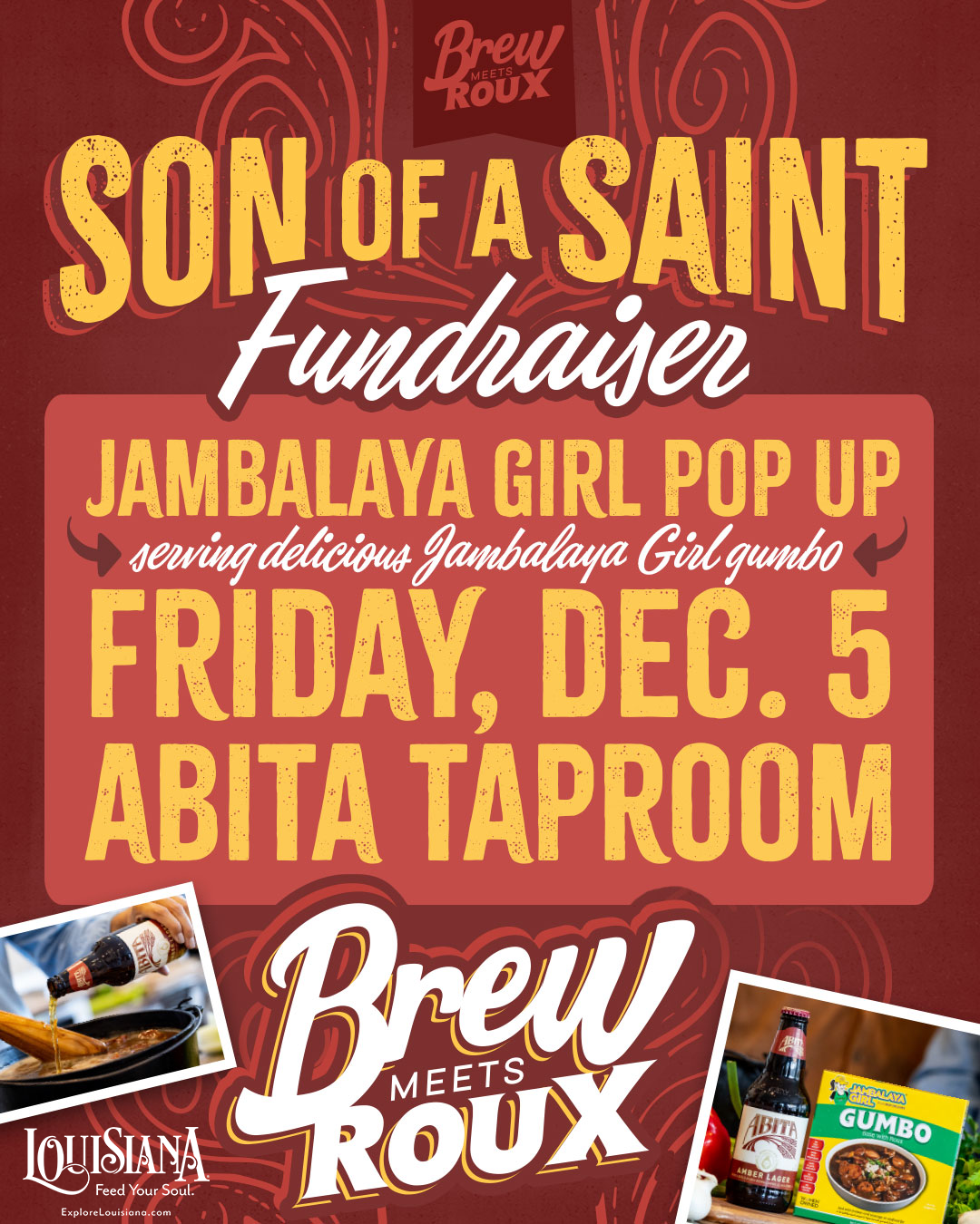Abita Brewing Company and Jambalaya Girl are teaming up once again for our annual “Brew Meets Roux” fundraiser benefiting Son of a Saint!