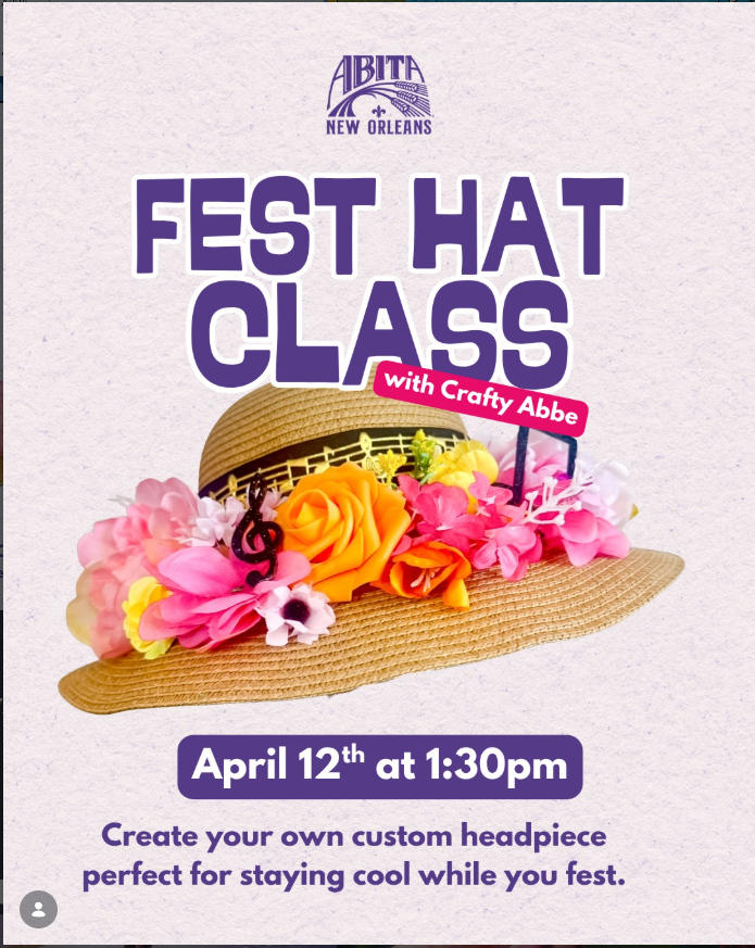 POV: you love a fun headpiece but don’t wanna burn at your favorite festival ☀️🎶 Create your own custom hat with bright florals + music notes—festive, functional, and totally you. 📅 4/12 | 1:30PM 📍 Abita New Orleans All materials + instruction included with @craftyabbenola . Beginner-friendly—come inspired, leave with something uniquely yours. |